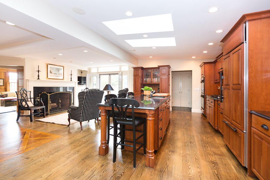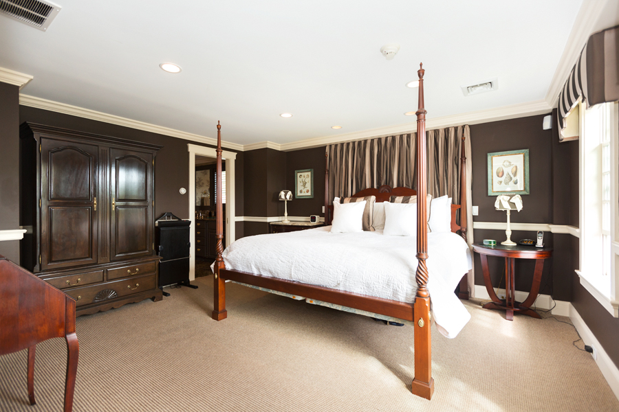 For a quiet space, the study and first floor den offer an excellent retreat. Bright and cheerful, the bright wood paneled walls give a homey feel and the fireplace sets the perfect tone.