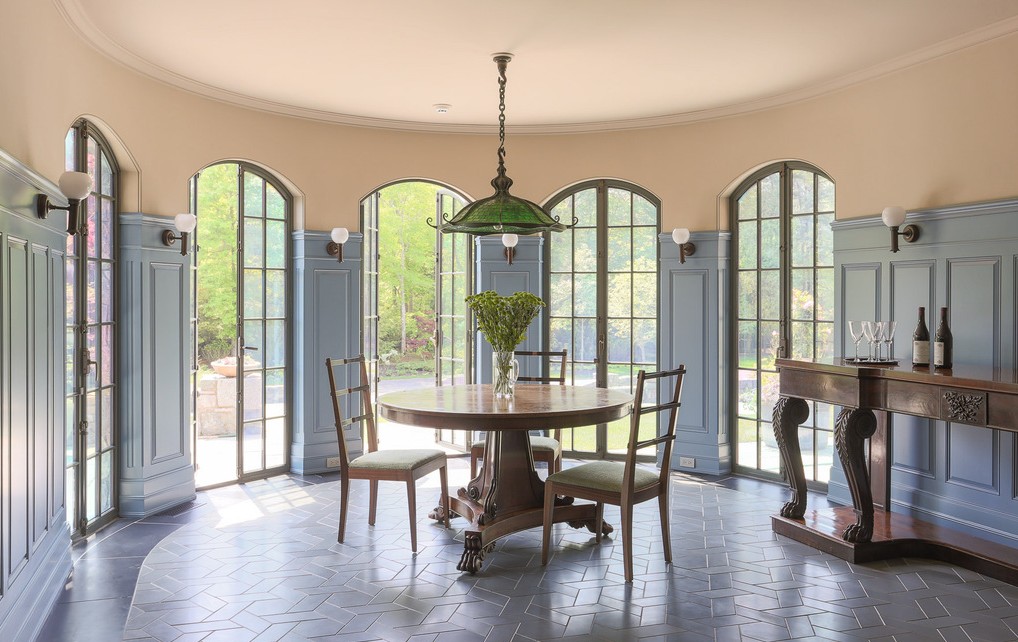This magnificent 1905 home was meticulously updated by Basil Walter Architects. The firm notes that, for the “renovation and expansion of this turn-of-the-century New England home, Basil Walter Architects wanted to capture the spirit of the rich and dynamic architectural dialogue happening across the Atlantic during the period, notably in the work of Edwin Lutyens, and McKim, Mead & White. With a mixture of stone, cedar and slate, as well as a high degree of craftsmanship, the exterior of the house has touches of classic English and American style, while the interior is open and modern in its layout.”