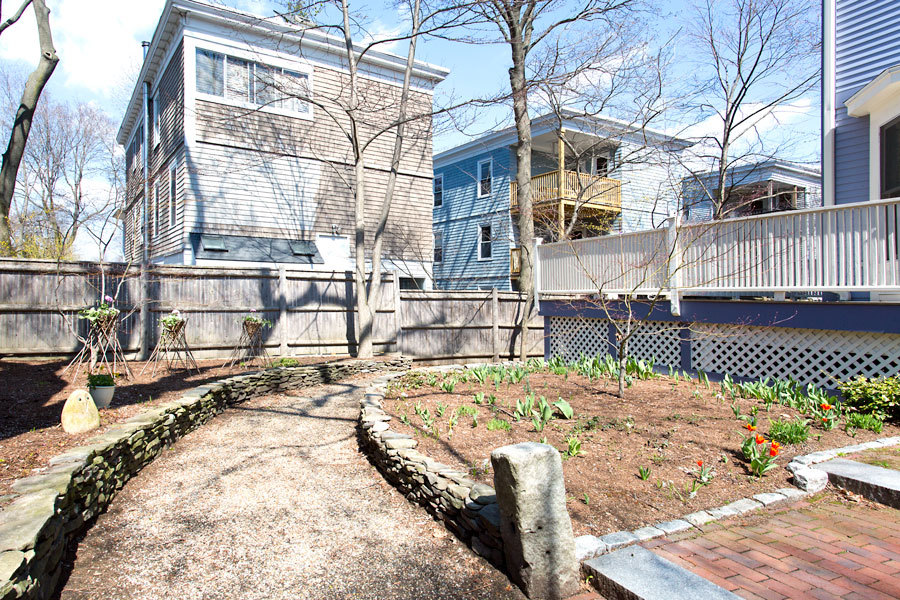 This three-bedroom two-and-a-half-bath town house has an amazing garden and wrap around deck rarely found in Cambridge townhouses. The first floor has an open floor plan, accented by a fireplace and bay window, that is perfect for entertaining. The well-designed cherry kitchen was redone in 2009 and has generous counter and storage space. The first floor also has a half bath and direct entry to the garage and storage room.