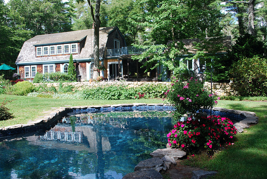 This wonderful custom Cape is set back on almost two private acres of land in East Marion, which is an area convenient to golf and beaches. The open and airy first floor, with views out onto the verdant landscaped property, is wonderful for entertaining. The lovely dining room boasts a cozy fireplace and arched windows. The second floor master suite is a sanctuary with it’s own sitting area, bath, and additional dressing room that could be converted to a small bedroom. There is a fantastic yard with a kidney shaped in-ground stone pool, attractive stone walls and patio, and beautiful plantings. There is also an oversized two-car detached garage.